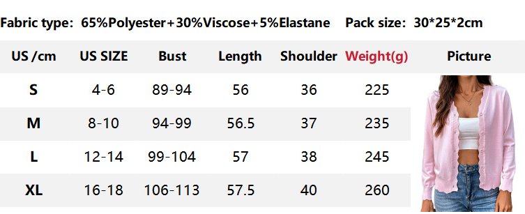 Elegant scalloped edge and slim silhouette give this V-neck cardigan a soft, feminine look that’s perfect for layering over tanks or dresses. Made from a breathable blend of ice silk and cotton, the fabric feels smooth and cool against the skin, ideal for spring and summer wear. Features a full button front and ribbed cuffs and hem, providing a secure yet flexible fit that's easy to dress up or down. This lightweight long sleeve cardigan pairs effortlessly with jeans, skirts, or shorts. Great for casual days, office layering, or relaxed weekend outings.